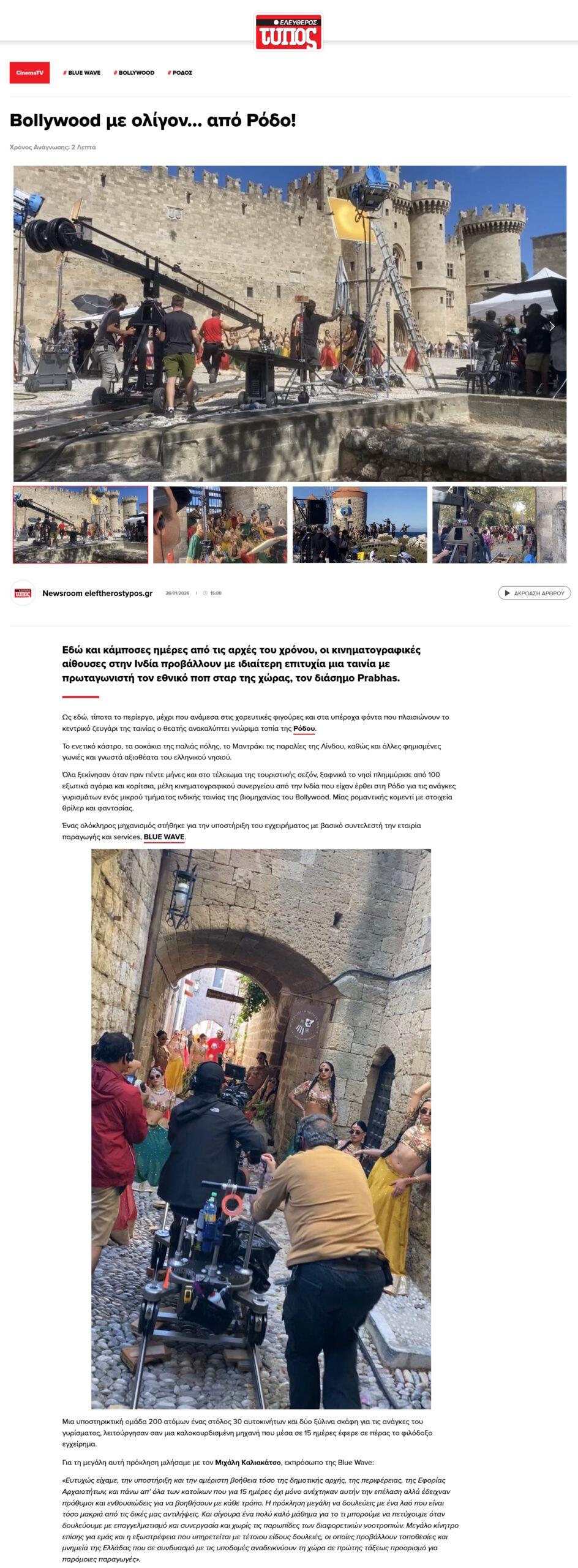 It all started when five months ago and at the end of the tourist season, the island was suddenly flooded with 100 exotic boys and girls, members of a film crew from India who had come to Rhodes for the filming needs of a small segment of an Indian film of the Bollywood industry. A romantic comedy with elements of thriller and fantasy.